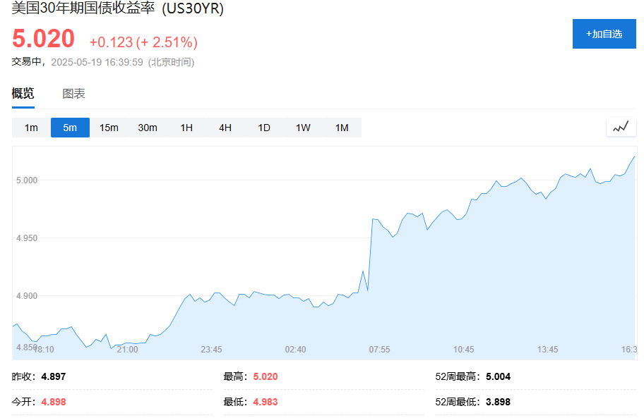 30年美债收益率超过5%,10年期已经冲破4.5%。