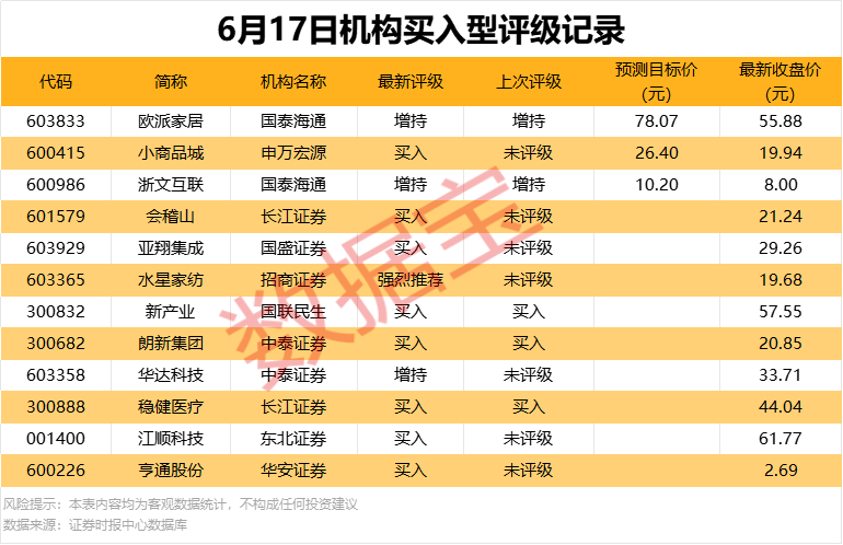 从机构评级变动看,今日机构买入型评级记录中,有多条评级记录为机构首次关注,涉及水星家纺、亚翔集成等。